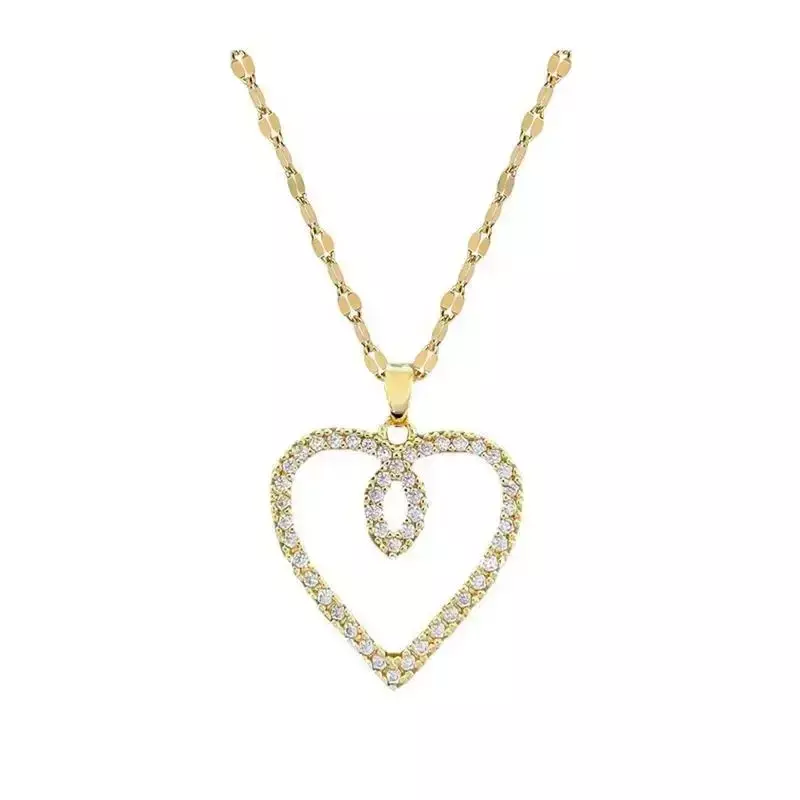 Colar delicado de ouro com pingente em formato de coração, decorado com zircônias brilhantes, perfeito para ocasiões especiais ou como presente.